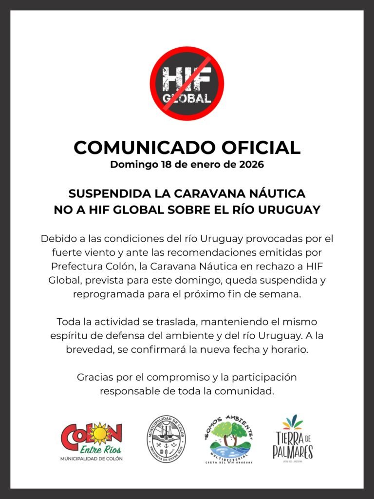 el mismo rio que se trata de defender no dejo que el domingo se realizara la caravana náutica por la instalacion de HIF Global en la costa Uruguaya.